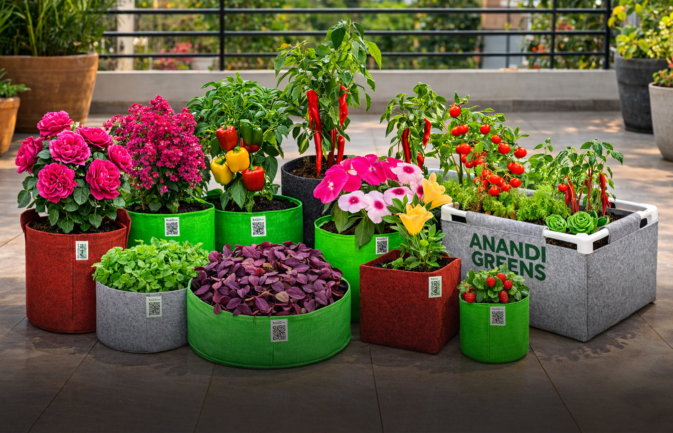 Anandi Greens Geo Fabric Grow Bags are designed to handle Chandigarh’s changing seasons, from cool December winters to hot June summers. The breathable fabric allows proper aeration and drainage, helping plant roots stay healthy while preventing waterlogging during rainy periods. Unlike traditional plastic pots, geo fabric grow bags maintain better soil health and support stronger plant growth.